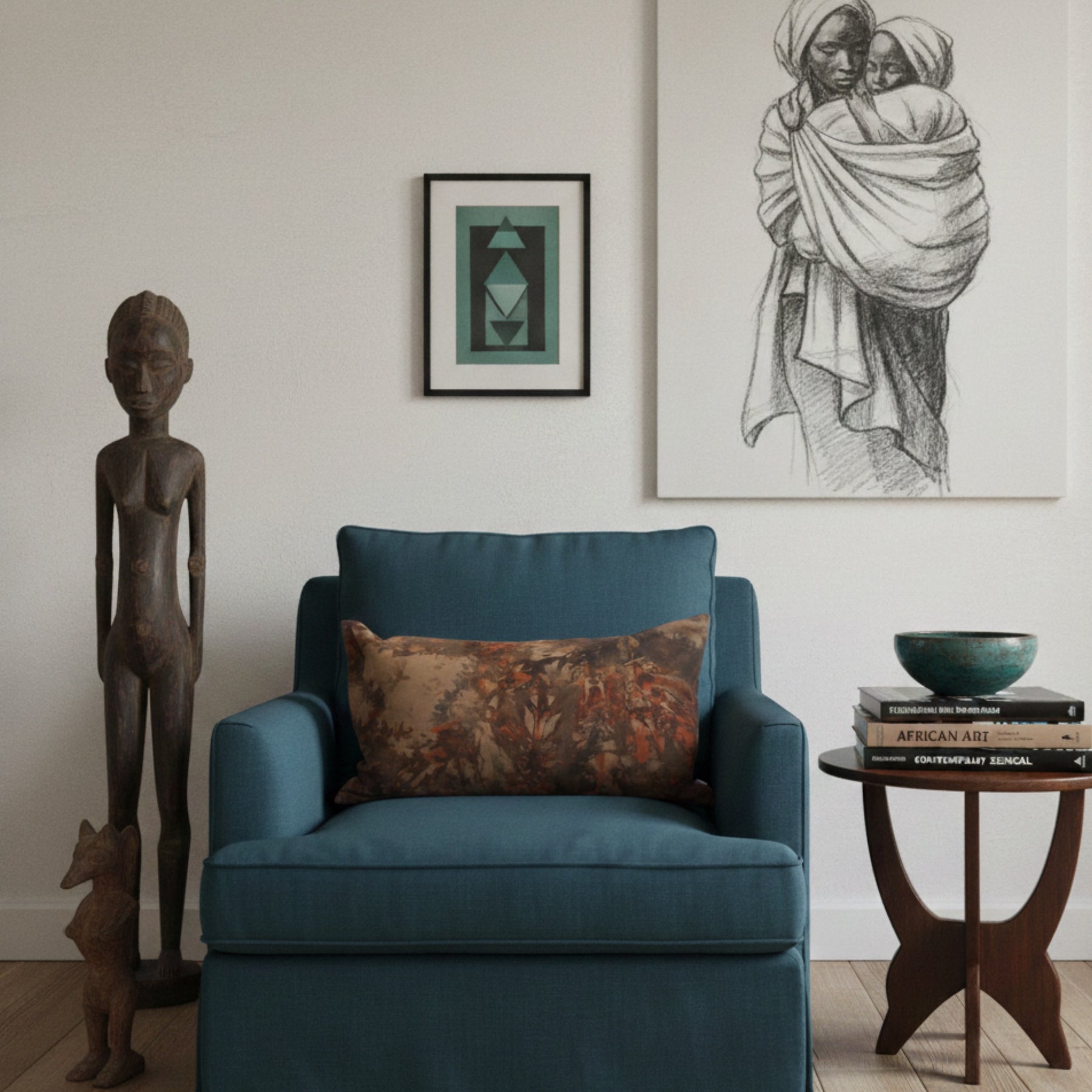 Le format rectangulaire 30 × 50 cm permet de structurer un canapé ou un fauteuil avec élégance. Une pièce textile expressive, ancrée et contemporaine.