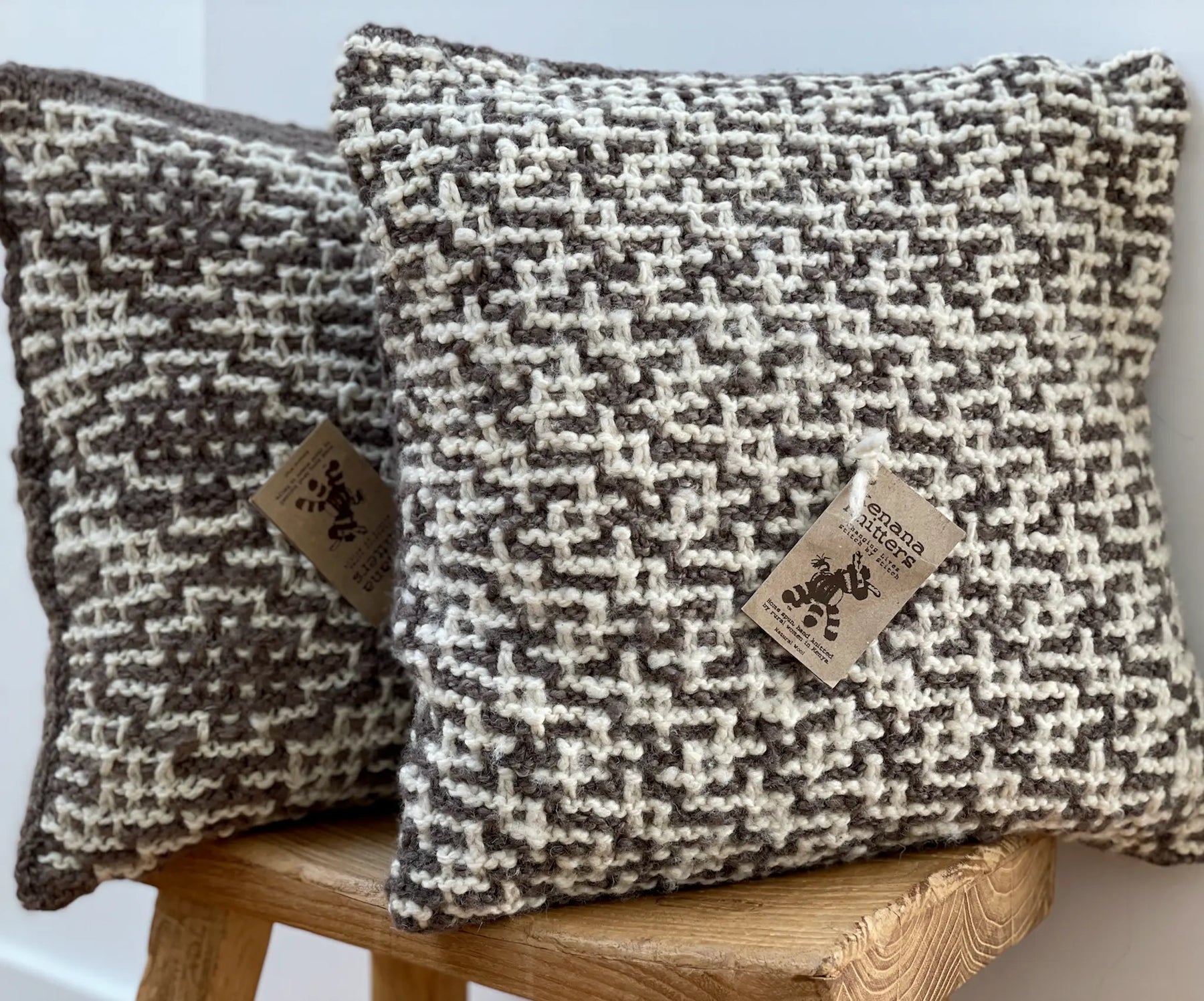 - Tricoté à la main au Kenya 🇰🇪 par les artisanes de la coopérative Kenana Knitters. - Chaque coussin est signé par la tricoteuse qui l'a réalisé. - Uniques, nos coussins peuvent présenter de légères différences (teinte, design, motifs, ...). Il ne s'agit pas de défauts, mais de la garantie de leur singularité.