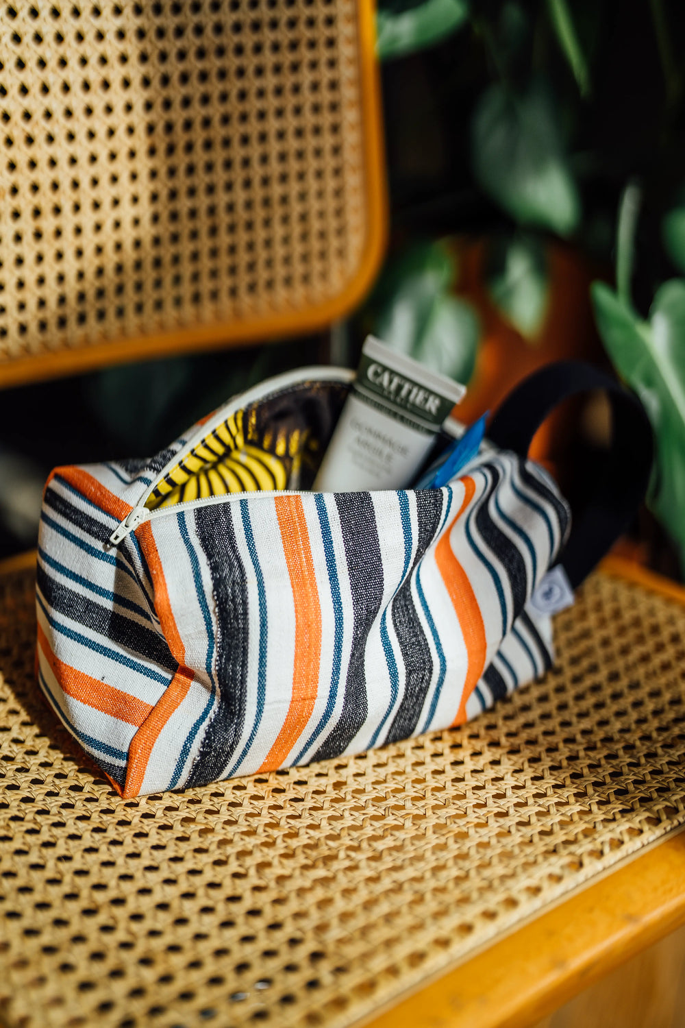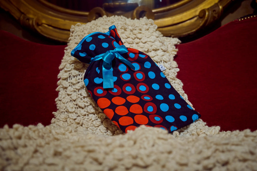Wax tigré orange & lin bleu, vibrant et contrasté.