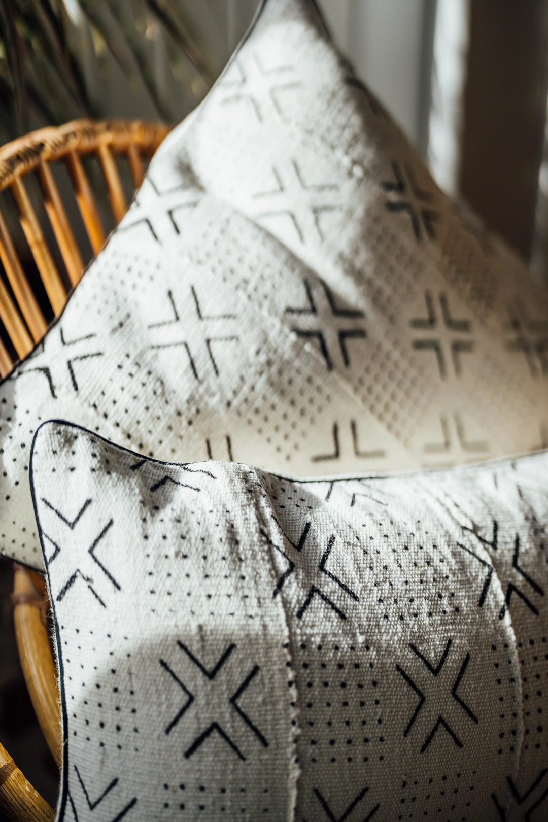 Housse de coussin éthnique carrée 50 x 50 cm - Mudcloth Bogolan blanc - UCHAWI - Studio Matongé