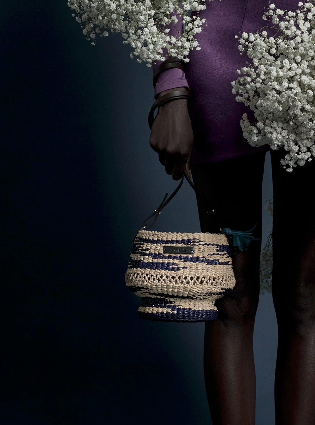 Fondée par Akosua Afriyie-Kumi, AAKS est une marque ghanéenne reconnue pour ses sacs en raphia tressés à la main par des artisanes locales.