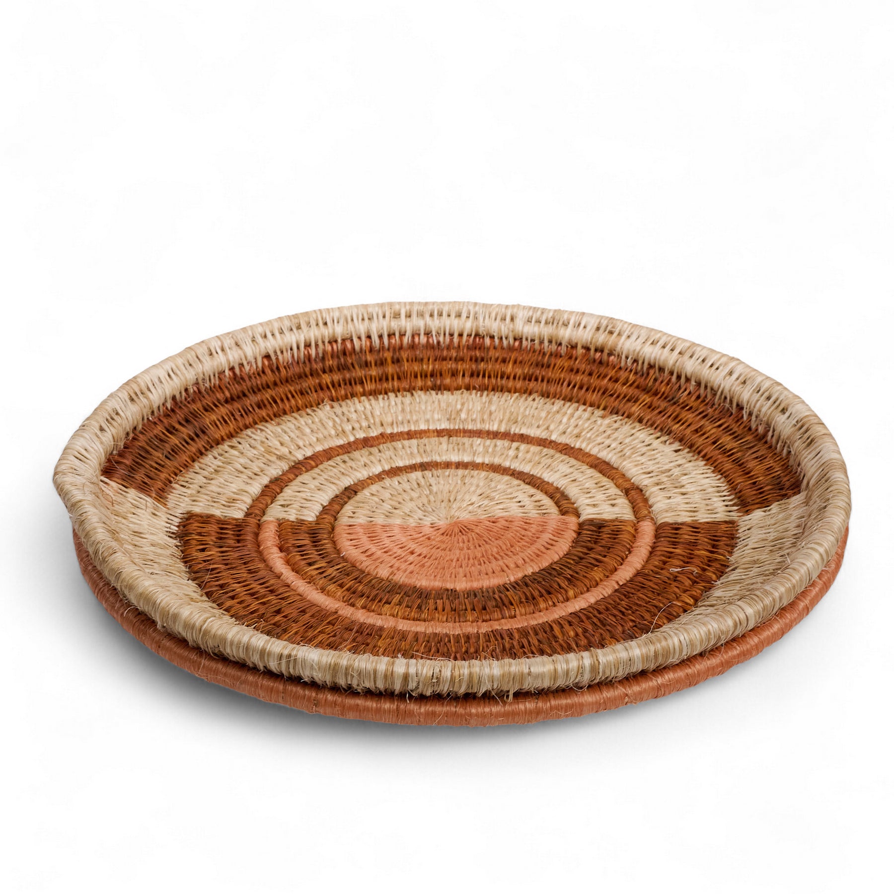Chaque plateau est tressé à la main par des artisanes de la coopérative Gone Rural en Eswatini. Depuis plus de 20 ans, ce projet soutient l’autonomie des femmes en milieu rural à travers un revenu juste, un savoir-faire valorisé et des conditions de travail respectueuses des personnes comme de la nature. Une pièce porteuse de sens, ancrée dans l’éthique du commerce équitable.