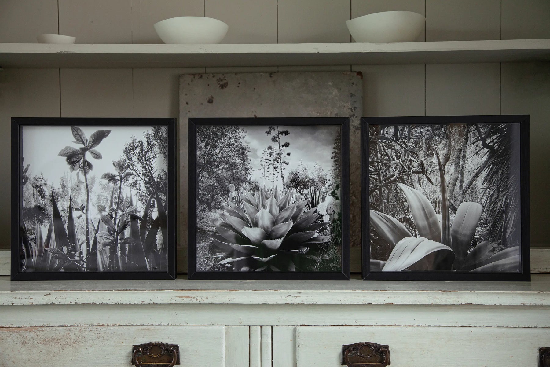 Triptique des Résistances Végétales d'Ana Bloom pour Studio Matongé. Touching the sky, Floraison et Banana shaped. Série limitée de 50 (+2EA), tirage Piezzo au charbon en 20 cm x 20 cm, en exclusivité pour Studio Matongé. Edition numérotée, signée et encadrée.